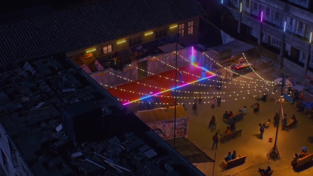 La mina-laberinto es el inicio del viaje hacia lo desconocido, la inmersión en el 3D por lo técnico, es obvia, pero aquí es también una manera de aproximarse al crisol del sueño, de ver un Aleph donde todo va sucediendo consecutivamente. Es un sueño. El plano secuencia funciona con una fluidez extraña para lo que es el terreno de Kaili; un sinfín de montañas y valles. Así, pasamos de estar atrapados dentro de una mina a sobrevolar el pueblo iluminado por luces neón de un show de karaoke nocturno.